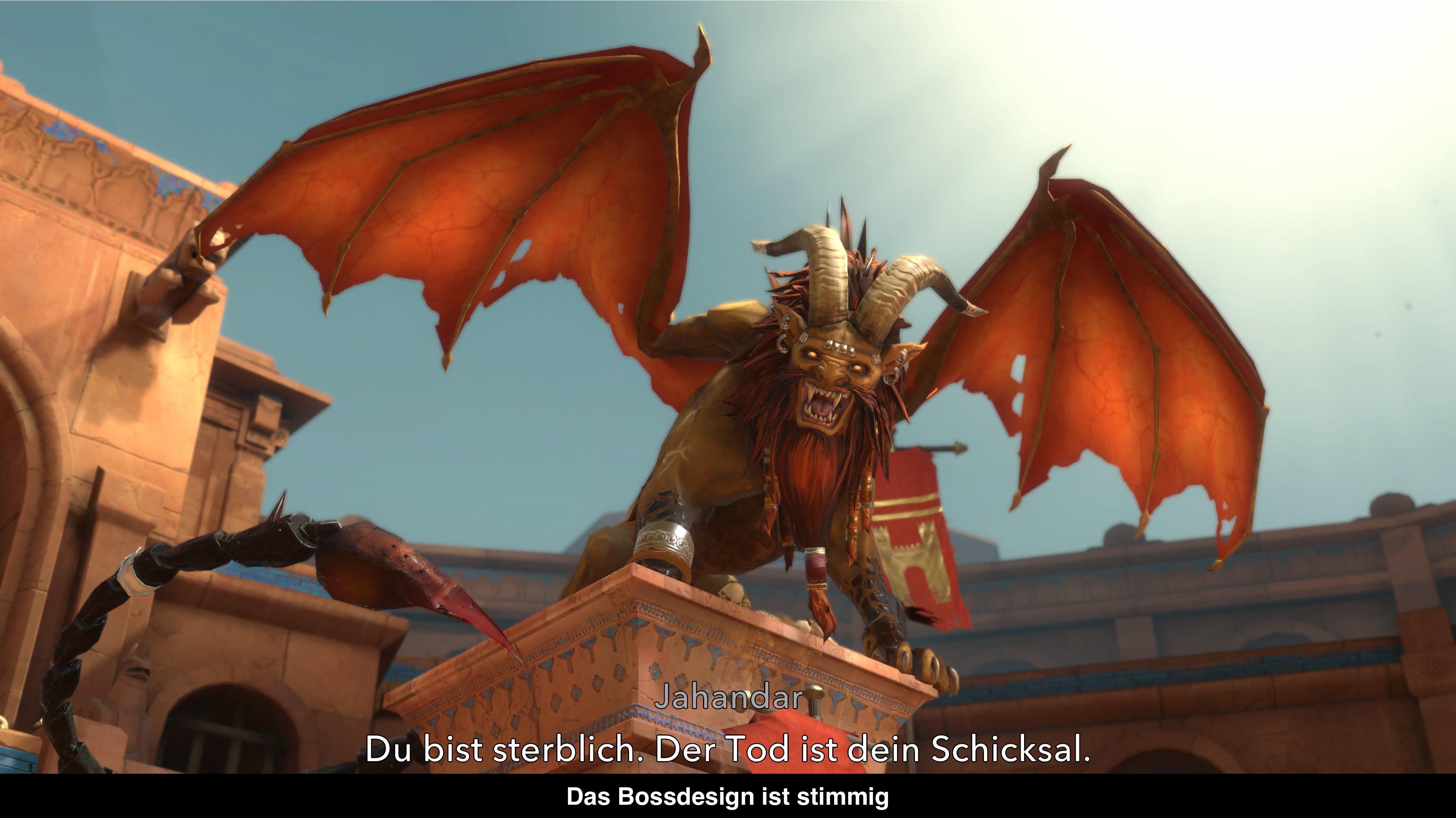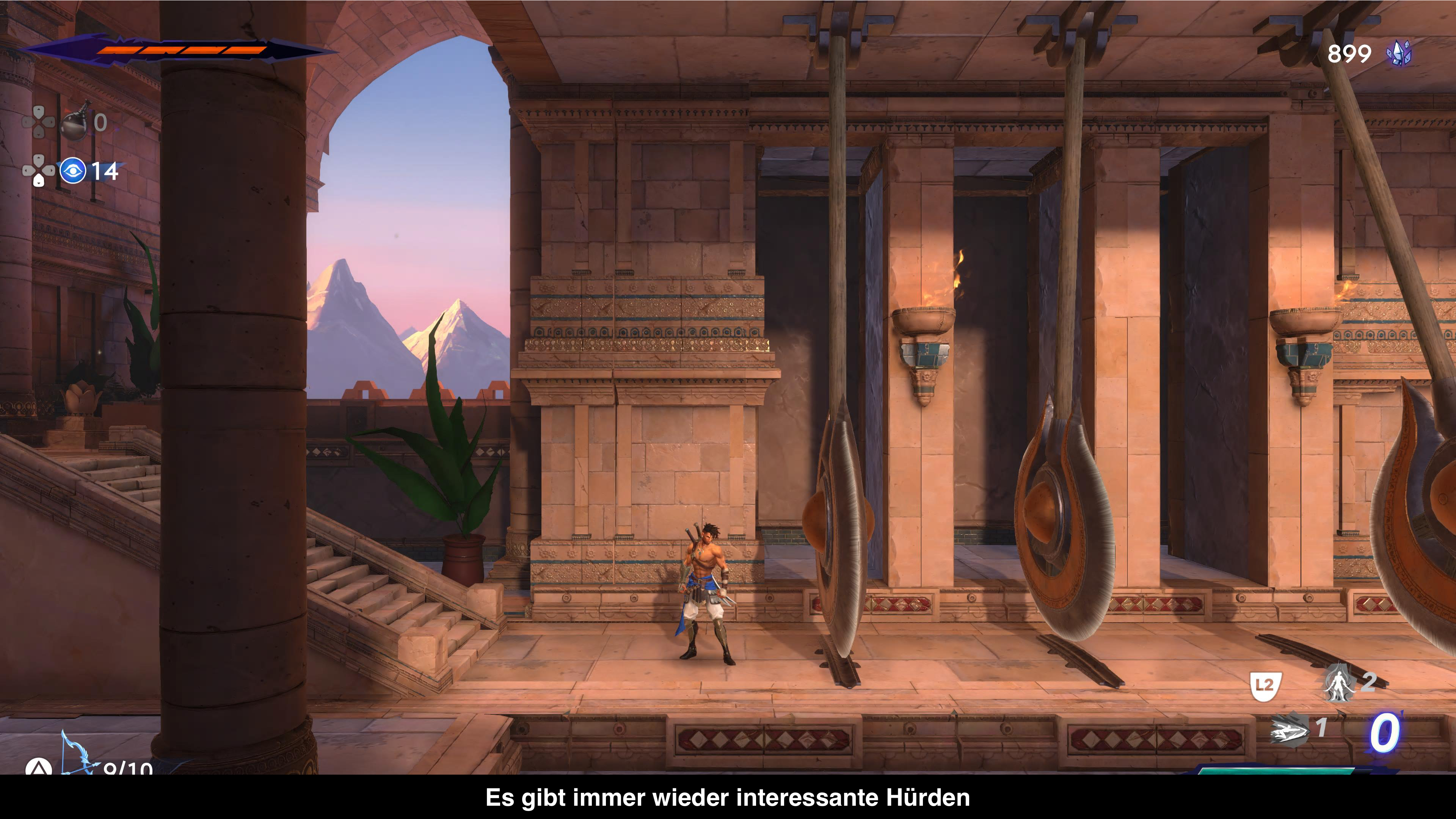 Das Spiel läuft von der Nintendo Switch bis zur PlayStation 5 auf so ziemlich jedem Gerät und die Skalierbarkeit merkt man dem Spiel auch an. Denn das Spiel kann wirklich toll aussehen, wenn die Szenerie und die Lichtatmosphäre passt. Oftmals ist das aber nicht der Fall und das Spiel wirkt etwas flach und langweilig, auch wenn es auf dem Berg Qaf viele verschiedene Areale mit unterschiedlichem Design gibt. Hinzu kommt, dass der Comicstil insgesamt gelungen ist, aber keine Bäume ausreißt. Dafür läuft das Spiel auf der PlayStation 5 immerhin in 4k und 60 Bildern pro Sekunde. Wer sogar über einen 120Hz TV verfügt, erhält automatisch 120 Bilder pro Sekunde. Einen separaten Qualitätsmodus oder Ähnliches gibt es also nicht. Erwähnenswert sei noch die Synchronisation. Wer möchte kann das Spiel nämlich auf Farsi spielen, um sich ganz der persischen Atmosphäre hinzugeben. Natürlich gibt es aber auch eine deutsche und englische Sprachausgabe und entsprechende Untertitel.