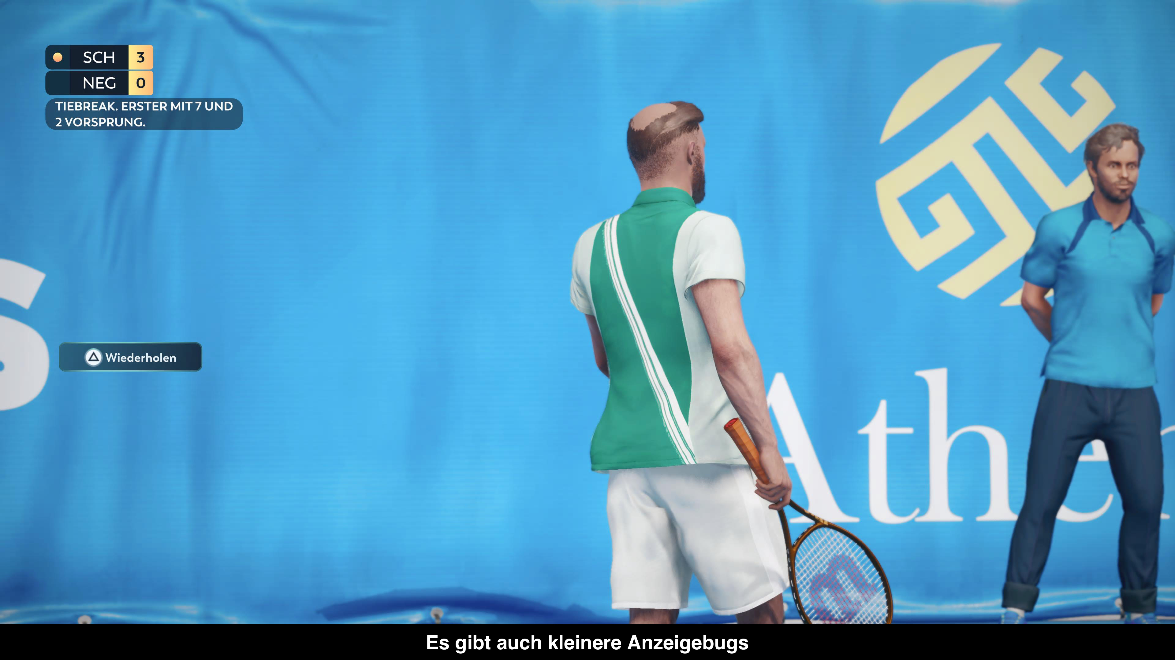 Grafisch gesehen ist TopSpin 2K25 ein zweischneidiges Schwert. Die Arenen und Plätze sind wirklich detailliert und die Zuschauerränge sind voll mit Leuten, wodurch eine gute Atmosphäre entsteht. Dafür lassen einige Charaktermodelle einiges zu wünschen übrig. Ein Andy Murray ist zum Beispiel kaum wiederzuerkennen und selbst der Vorzeigeprofi des Spiels, Roger Federer, hat nur bedingt Ähnlichkeit mit seinem Vorbild. Hinzu kommen in manchen Sequenzen etwas hölzerne Animationen, vor allem im Gesicht. Im Ballwechsel selbst passen die Animationen aber und sehen schön flüssig aus. Nervig sind übrigens noch die Sounds aus dem Controllerlautsprecher. Dazu zählt zum Beispiel das Quietschen der Schuhe oder das Auftreffen des Balls auf dem Boden und diese Sounds kommen in einer wahnsinnigen Lautstärke aus den eher schwachen Lautsprechern heraus, die auf Dauer einfach nerven. Zum Glück kann man dies relativ einfach ausstellen.