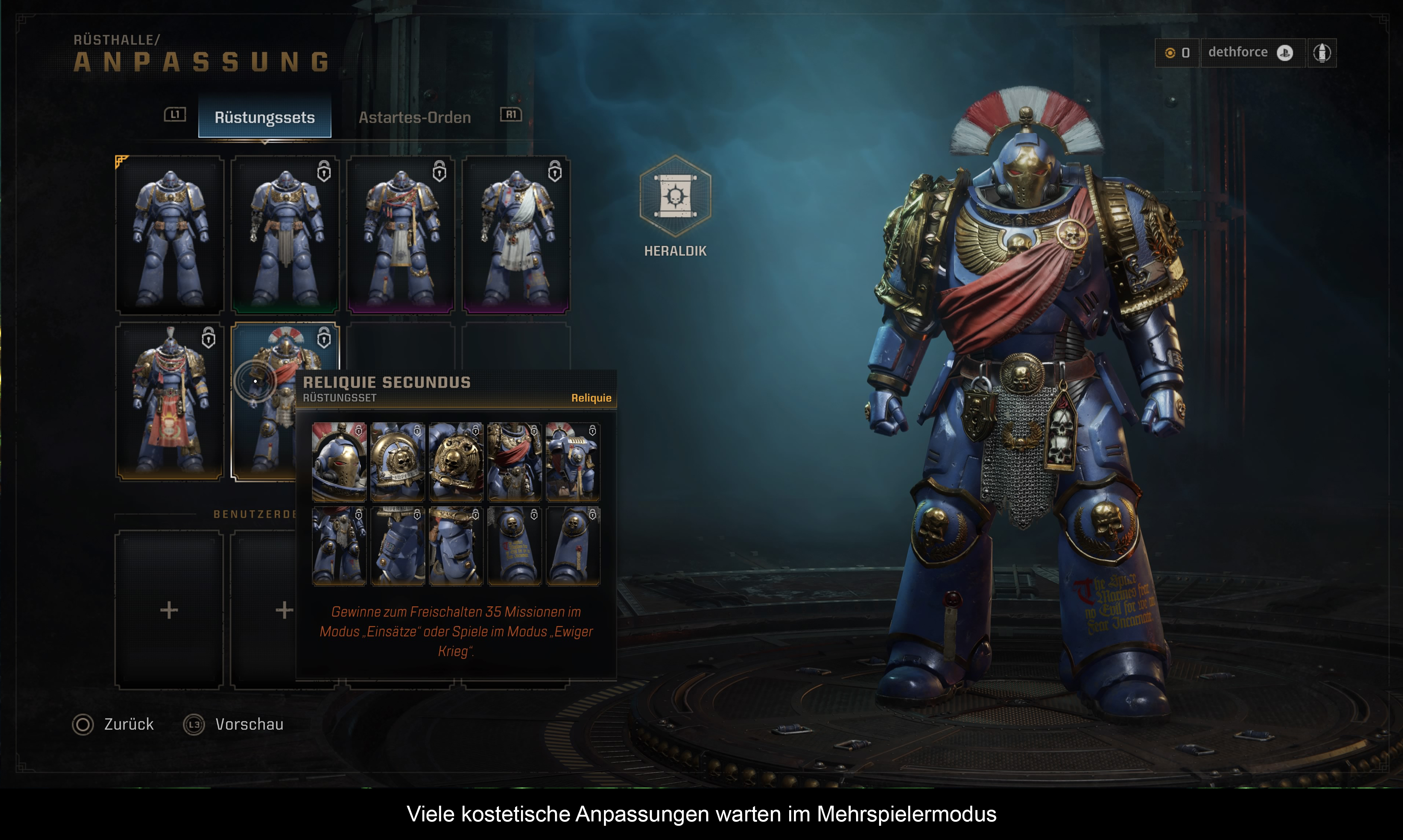 Außerdem werden in diesen beiden Modi auch diverse RPG-Elemente eingeführt. So kann man aus verschiedenen Space Marine Klassen und Waffen wählen. Durch Absolvieren von Missionen und Kämpfen schaltet man neue (kosmetische) Rüstungsteile, weitere Todeswerkzeuge und Perks frei. Auch darf man in die Rüstung eines anderen Space Marine Ordens schlüpfen (es stehen wirklich viele Schemas bereit) und wer lieber die Verräter-Legionen befehligen will, hat dazu ebenso die Möglichkeit. Zu guter Letzt steht es jedem frei, auch seinen eigenen Orden erschaffen. Der Wiederspielwert ist ziemlich hoch und Saber Interactive hat bereits versprochen, in den kommenden Monaten für neue (auch kostenlose) Inhalte zu sorgen.
