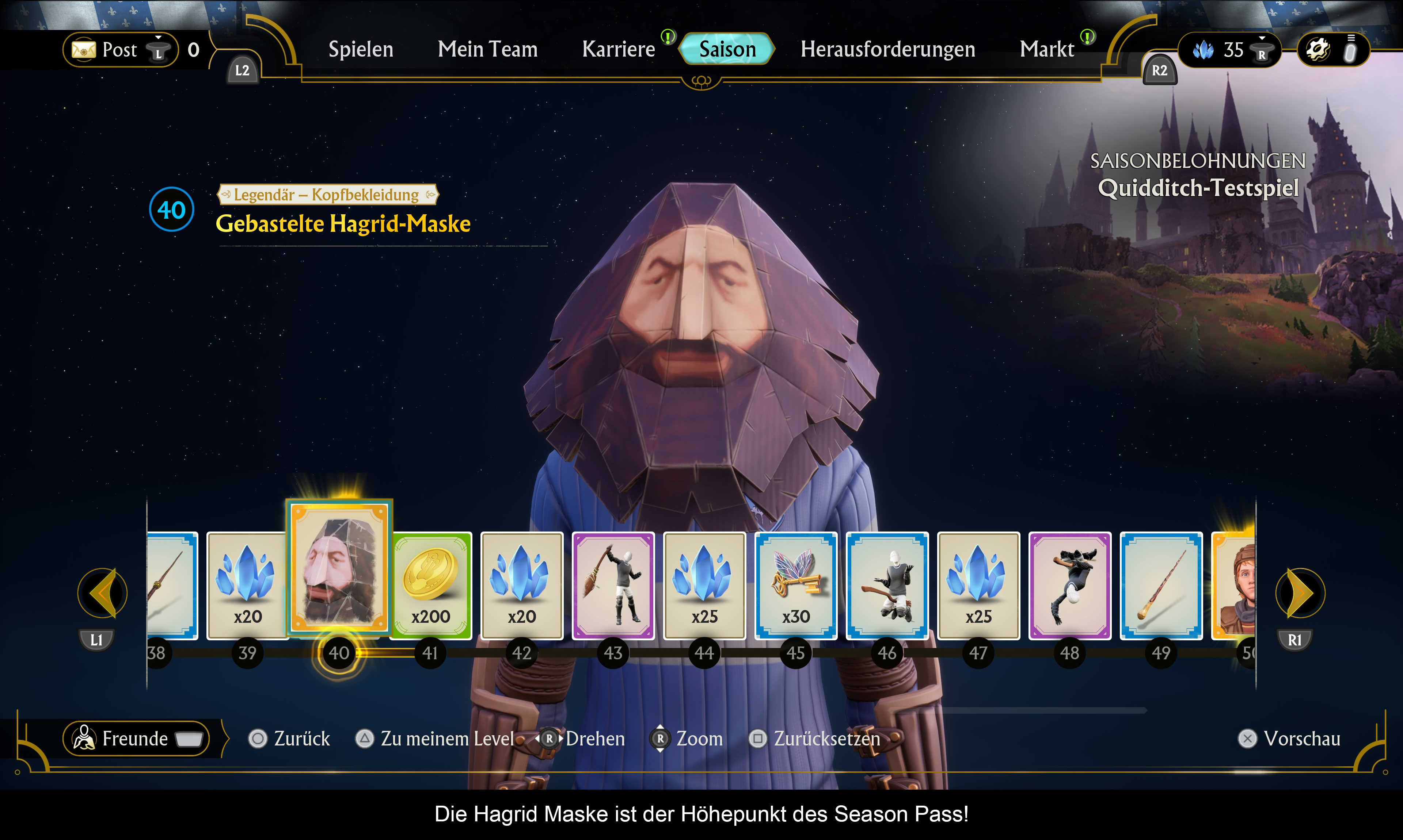 21 Jahre hat es gedauert, bis es endlich wieder ein neues Quidditch Spiel gibt. Ja die Filmumsetzungen haben sich zwar immer wieder bemüht, diesen Sport zu repräsentieren, aber das war doch nur ein nettes Gimmick! Hier haben wir ein vollwertiges Spiel, welches bewusst die Buchregeln außer Kraft setzt, um eine deutlich kompetitivere Spielerfahrung zu bieten. In diesem Bereich kann es auch voll und ganz überzeugen. Näher wird man an ein Quidditch Spiel nicht herankommen. Da ist es etwas traurig, dass die anderen Aspekte vernachlässigt wurden. Mit dem überschaubaren Einzelspieler-Modus kann man noch leben, aber das Online viele wesentliche Funktionen fehlen, ist nicht zu akzeptieren. Zumindest ein Clansupport und eine Spielersuche im gleichen Level hätten vorhanden sein müssen. Neulinge werden somit schnell frustriert sein, wenn man auf eingespielte Level 60 Teams trifft. Hier hat der Spieler einfach keine Chance und wird das Spiel schnell zur Seite legen. Auch der Umfang könnte hinsichtlich der Stadien etwas größer sein. Wäre ja nicht so schwer gewesen, ein paar generisches Stadien einiger Länder umzusetzen. Oder auch, dass man bekannte Quidditch Mannschaften aus dem Potterverse einbaut. Erwähnt sei hier noch die Struktur des Ingame Shops. Im Prinzip richtet sich das Design an bekannte Free 2 Play Spiele. Das macht es einerseits vertraut, schürt aber auch gleich den Verdacht einer schnellen Abzocke. Noch ist die nicht zu sehen, aber es existiert bereits ein Season Pass. Potterheads werden bei diesem Spiel ihre Freude haben, aber für andere Sportspielfans bin ich mir nicht sicher. Die Mechaniken sind gut, aber doch weit entfernt, von dem was man aus anderen Spielen kennt. Am Ende hat man alles gesehen und die Motivation, die PS1 Hagrid-Maske zu erspielen, dürfte nicht für jeden den gleichen Stellenwert haben.