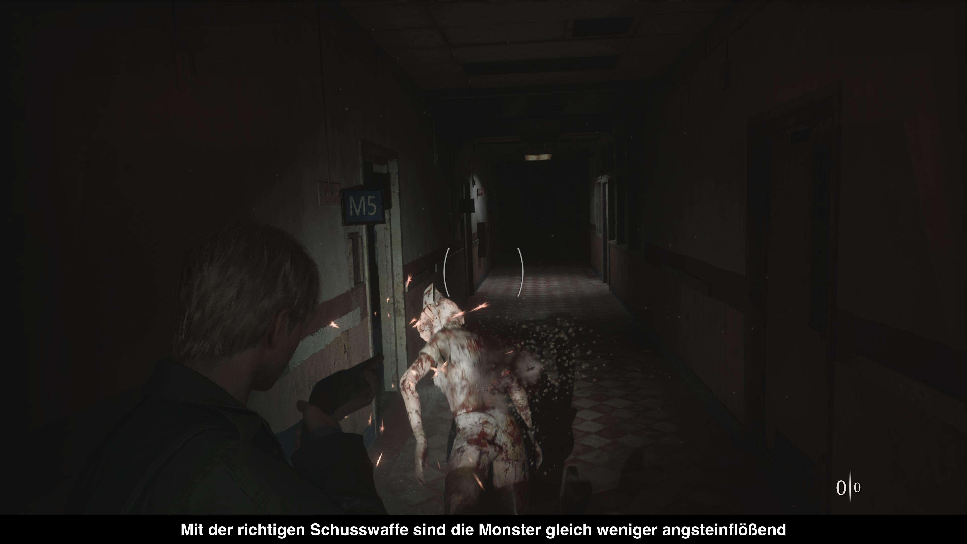 James ist kein Militärveteran, weswegen man die Stadt etwas gemächlicher erkundet und auch vorsichtig sein muss. Obwohl quasi die ganze Stadt abgebildet wurde, ist das Spiel sehr geschickt darin den Spieler zu leiten. Das passiert quasi komplett über die Karte, die man jederzeit einblenden kann. Darin vermerkt James immer wieder, wenn man etwas Interessantes gesehen hat und meistens wird man früher oder später darauf zurückkommen. Die Rätsel, die sich so ergeben, drehen sich meistens darum, die richtigen Items zu finden, um beispielsweise ein Tor aufzuschließen oder andere Gerätschaften zu nutzen. Das ist zwar alles nicht bahnbrechend, aber es funktioniert erstaunlich gut, um den Spieler durch die Welt zu führen. Leider kann man nicht in Seelenruhe alles erkunden, denn hin und wieder trifft man auf diverse Monster, die man im Kampf erledigen muss. Während einem zu Beginn nur ein Holzstab zur Verfügung steht, findet man später auch Schusswaffen mit meist viel zu wenig Munition. Dementsprechend kann es durchaus Sinn machen, sich die Schusswaffen für knifflige Situationen anzusparen und entweder an den Monstern vorbeizuschleichen oder sie mit den Nahkampfwaffen zu erledigen. Zu Beginn fühlt sich der Zweikampf etwas unbeholfen an und man wird öfter getroffen als man möchte. Aber irgendwann gewöhnt man sich daran. Etwas verbesserungswürdig ist die Anzahl an Gegnervarianten, weil man den Großteil des Spiels immer wieder auf die gleichen Monster trifft.