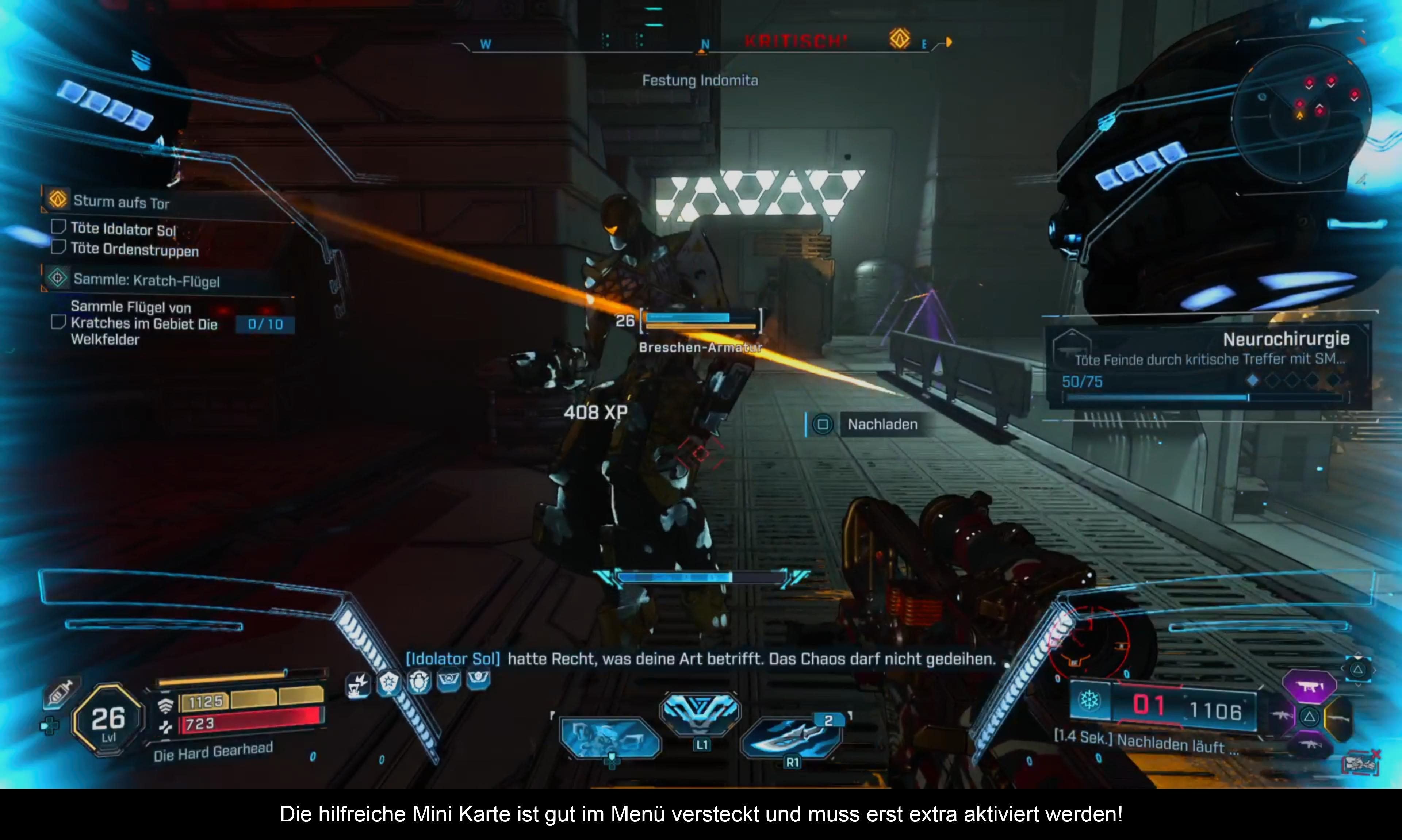Allerdings schwankt die Qualität der Aufgaben zu sehr. Seltsame Klettereinlagen und lange „Bringe A nach B”-Quests stören den Rhythmus. Zumindest bieten die zahllosen Datalogs Einblick in die Welt und ihre Charaktere. Für das Finden der Kammerschlüsselfragmente gibt es als Belohnung ein Portal zu einem der drei mächtigen Kammermonster. Diese Welt wurde teilweise lieblos, teilweise aber auch gut überlegt mit jeder Menge Kleinkram vollgestopft und an jeder Ecke gibt es Gegner zu bekämpfen. Wie weit man diesen folgt, bleibt einem selbst überlassen. Wer aber spezielle legendäre Waffen haben will, muss diesen Aktivitäten nachgehen und hoffen, dass eines dieser Monster eine fallen lässt. Denn im Gegensatz zum Vorgänger gibt es keine einzigartigen Waffen als Belohnung mehr. Glücklicherweise lassen sich Missionen und Bosse aber immer und immer wiederholen. So habt ihr immer die Chance, dass ein Endgegner eine solche Waffe fallen lässt. Zudem bringen diese Missionen Anpassungen für euren Charakter, die jedoch nicht so einzigartig sind, wie man es sich wünschen würde.