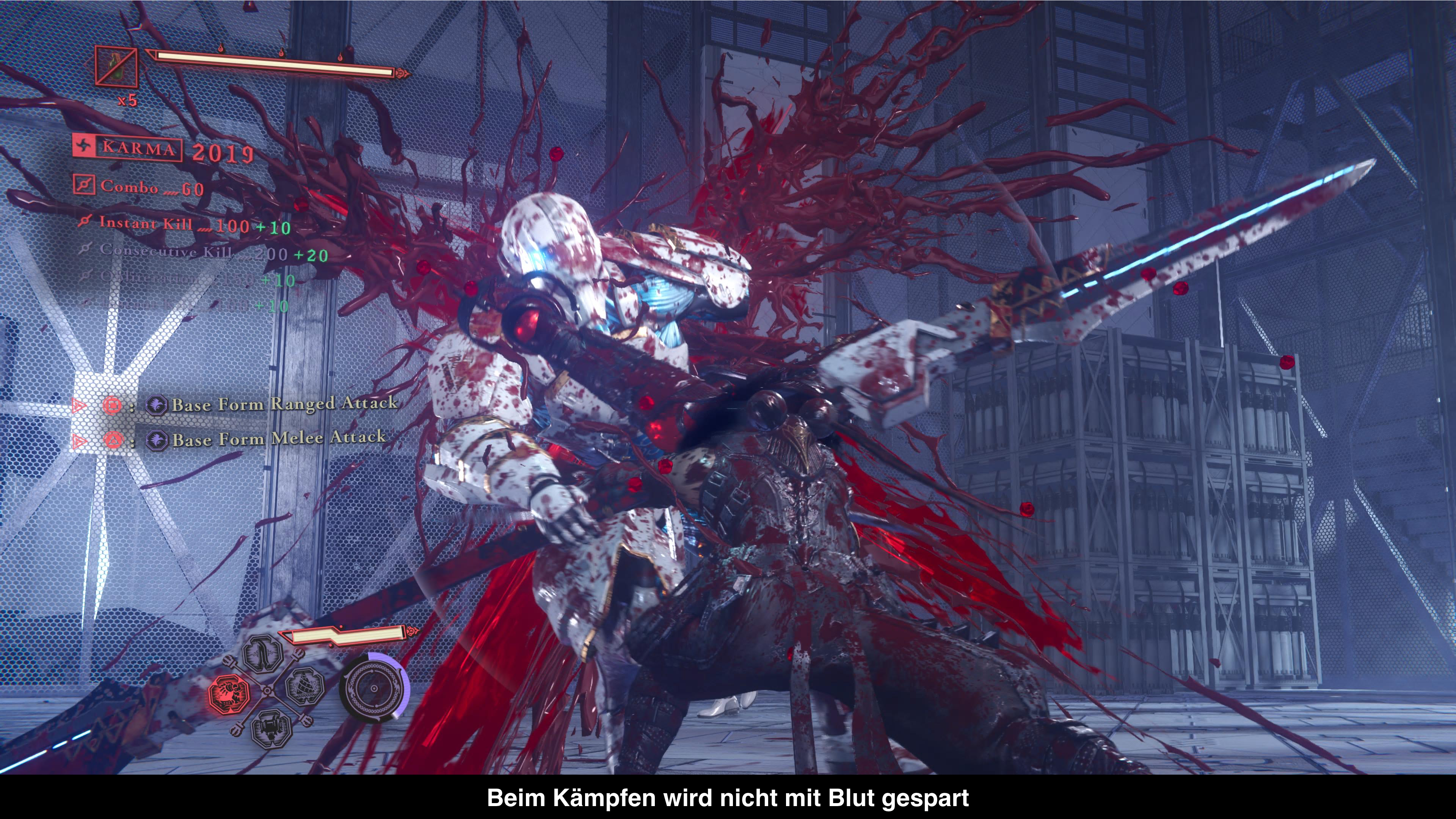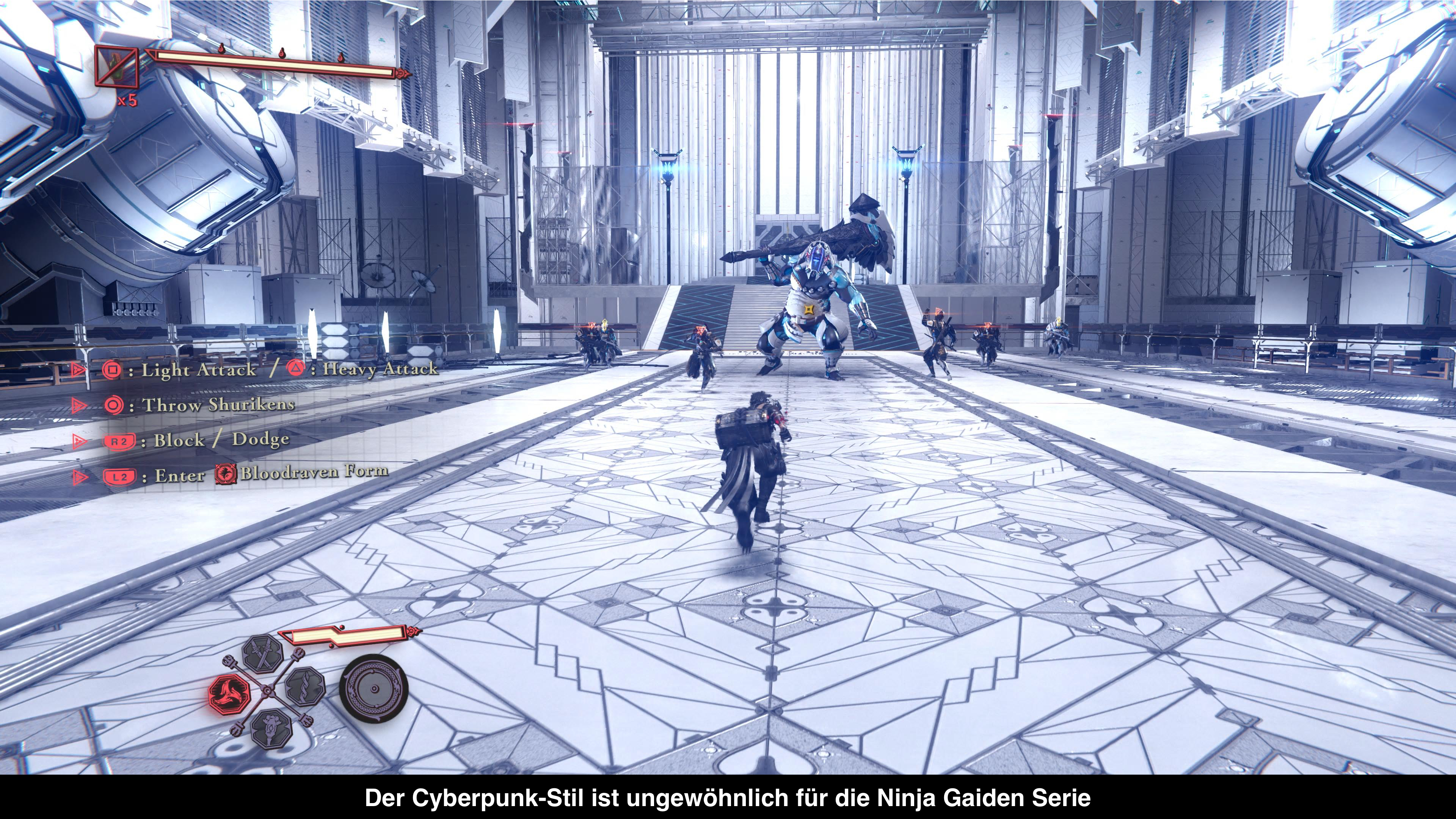 Obwohl man in die Rolle von Yakumo schlüpft, greift dieser auf zahlreiche Moves aus Ryus Repertoire zurück, etwa den Izuna Drop. Trotzdem spielt er sich spürbar anders, denn seine Angriffe sind deutlich schneller. Zudem kann er die Blutrabenform aktivieren, wodurch seine Attacken zwar langsamer, aber auch wesentlich kraftvoller werden. Ideal, um gegnerische Angriffe zu unterbrechen. Im Berserker-Modus kämpft man sich noch effizienter durch Gegnermassen und kann bestimmte Feinde sogar mit einem Treffer ausschalten. Hinzu kommen Ultimative Techniken, Parries, Ausweichmanöver, Konter und viele weitere Mechaniken, die im Verlauf des Spiels freigeschaltet werden.