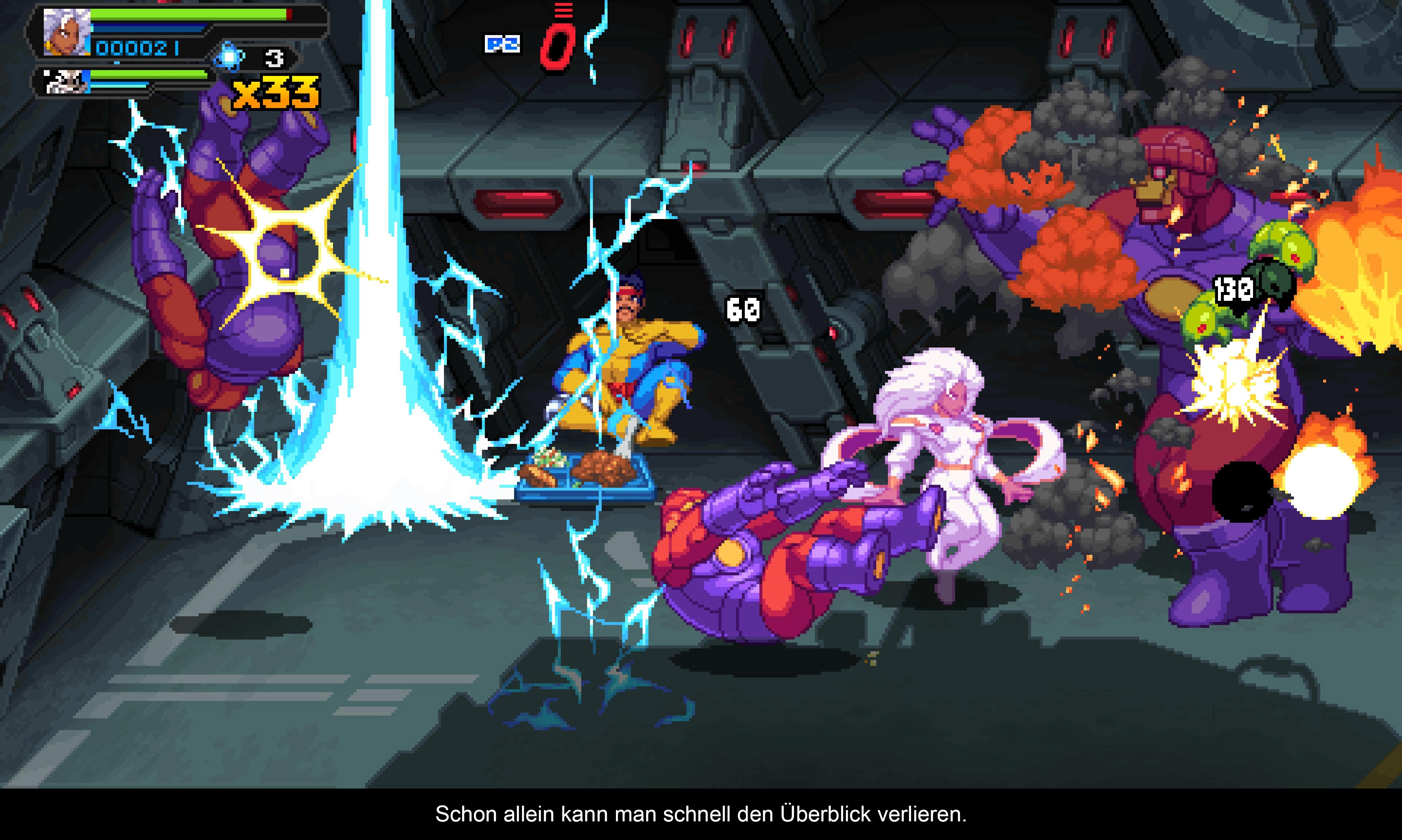 „Marvel Cosmic Invasion“ sieht dufte aus und macht auch Spaß – zumindest für einige Stunden. Dann ist jedoch die Luft raus. Das Kampfsystem bietet für meinen Geschmack zu wenig Finesse und die Levels unterscheiden sich kaum voneinander. Manche Boss-Gegner nerven zudem übertrieben viel. Dass man ein paar Sachen freischalten kann, kommt dem Wiederspielwert zugute. Aber spätestens zu viert im Coop wird es maximal unübersichtlich. Schließlich sind neben den Gegnern dann auch noch höchstens zwei Spielfiguren pro Spieler auf dem Bildschirm. Ein Lob jedoch für die gelungene Pixel-Grafik und den durchgehenden klassischen Marvel-Stil. Die Musik passt ebenfalls sehr gut dazu, ebenso die englische Sprachausgabe. Insgesamt finde ich den Preis von 30 € zu hoch, vor allem, wenn man bedenkt, dass mit „Absolum” vor kurzem ein wesentlich ausgereifteres Spiel in ähnlicher Machart erschienen ist. Wartet am besten auf einen Sale!