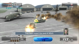 Das eigentliche Spiel unter den drei Shootern ist das namensgebende Razing Storm. Hier wurde nicht nur aus der Spielhalle importiert, sondern auch erweitert. Neben dem obligatorischen Arcade Mode, der ähnlich kurz ist wie die anderen beiden Spiele, gibt es auch einen Story Mode, den man als einen First Person Shooter mit Move bezeichnen kann. Der Move Controller bewegt das Fadenkreuz und den Bildausschnitt, während der Navi Controller die eigentlich Bewegung übernimmt. Dazu kommen noch diverse Funktionen wie Nachladen, Rennen und Waffe wechseln, die quer über beide Controller verteilt sind. Die Story ist nicht der Rede wert: Bösewicht bringt Gefängnis unter seine Kontrolle, zettelt Aufstände an, spielt mit Superwaffen herum, Spieler muss ihn daran hindern. Also kämpfen wir uns durch vier schlecht designte Abschnitte und ballern die dummen Gegnerhorden über den Haufen. Dabei gibt es in den schlauchigen Levels absolut nichts zu entdecken, aber ein Großteil der Dekoration ist zumindest zerstörbar. Wenigstens stirbt man nicht bei jedem Treffer, denn sonst käme trotz den unendlichen Continues (noch) schnell(er) Frust auf. Das Deckungssystem hilft dabei auch nichts, denn obwohl es durch kleine Dreiecke angezeigt wird, funktioniert es nur in einer bestimmten Richtung. Ich kann mich also nur an einer Seite der Mauer verschanzen, schaue ich in eine andere Richtung als die von den Programmierern gedachte, funktioniert das ganze System nicht. Ist man dann in Deckung merkt man, dass man außer nach zu laden überhaupt nichts tun kann. Wer die Nase von der Story voll hat, darf sich noch am Sentry Mode versuchen. In zwölf äußerst kurzen Szenarien muss ein Gefangenenaufstand verhindert werden, indem man sie einfach abknallt. Dazu stehe ich an einem festen Ort mit einem Scharfschützengewehr und muss zwischen Freund und Feind unterscheiden. Dabei ist der Zoomfaktor so gewählt, dass viel zu sehr vergrößert wird, so dass bereits wenige Schritte des Ziels reichen, um aus dem Bild zu laufen. Ohne Zoom hingegen sind Treffer reine Glückssache. Auch komisch ist, dass nur mit Stoff bekleidete Gefangene bis zu fünf Körpertreffer benötigen bis sie umkippen; eine mit dicker Panzerung versehene freundliche Wache allerdings schon nach einem Treffer stirbt. Nein, der Sentry-Mode macht so gar keinen Spaß. Wer es richtig mies mag, sollte sich den Online-Modus anschauen. Der funktioniert im Prinzip wie die Story, was Steuerung und Waffen angeht, nur eben als Deathmatch, Capture the Flag oder King of the Hill. Mitspieler sind absolute Mangelware – glücklicherweise muss man da schon fast sagen.