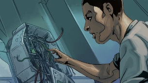 Die Geschichte spielt auf der Sprawl bevor dort die Necromorph angreifen und die Hölle auf Erden ausbricht. Erzählt wird die Handlung aus der Sicht von Franco einem Techniker und seiner bewaffneten Freundin und in Form eines interaktiven Comics präsentiert. Man schaut also zu, wie sich die Geschichte weiterentwickelt und darf manchmal eine Entscheidung treffen und muss hin und wieder auch mal selbst etwas tun. Dies beschränkt sich aber auf drei eher schlechte Minispiele, mit denen man die Story vorantreibt. Um Türen zu hacken oder Maschinen wieder zum Laufen zu bringen, müsst ihr entweder eine Art Tower Defense Spiel aus der Sicht des Angreifers spielen, dann mit Lichtstrahlen und Spiegeln kleinere Rätsel lösen oder aus der 2D Seitenansicht ein digitales Rennen bestreiten. Leider gestaltet sich keins der Minispiele besonders spannend, denn wenn ich beim Tower Defense Game eigentlich nur Horden von Angreifern losschicke, soll das nur die Spielzeit in die Länge ziehen. Dabei möchte man eigentlich die recht gute und interessante Story sehen und nicht seine Zeit damit verschwenden. Da hilft es auch nichts, wenn man sich Online mit anderen per Bestenliste messen kann oder die Spiele offline im Multiplayer spielen kann. Was alleine schon kaum Emotionen kann, wird auch im Multiplayer nicht unbedingt besser.