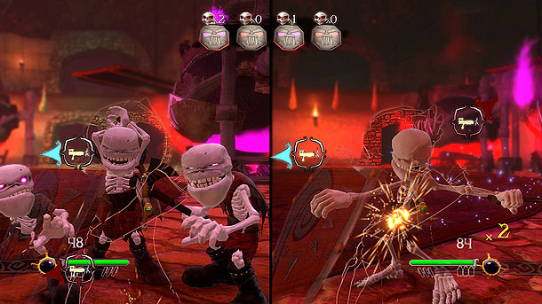 Die Geschichte des Spiels dreht sich um den jungen Prinzen Edmund, der eines Tages der Herrscher über ein riesiges Reich werden soll und daher ein magisches Amulett sein Eigen nennt durch das er mit einem seiner Vorfahren kommunizieren kann. Eine heile Welt, wie man sie sich vorstellt, doch eines Tages fällt der dunkle Zauberer Morgrimm mit seinen Skelettschergen ein, belagert das Schloss und verwandelt alle Menschen in Skelette. Auch unseren Edmund. Von nun an nennt ihr euch aber Deadmund und eure Aufgabe ist es den bösen Morgrimm zu besiegen und so die Menschen von dem Fluch zu befreien. Glücklicherweise ist Deadmund ein angehender Ritter und so könnt ihr euch mit Schild und Schwert gegen die vielen Gegner zur Wehr setzen und hier kommen natürlich die PlayStation Move Controller zum Einsatz. Denn eure Bewegungen werden 1:1 auf Deadmund übertragen und so kann man sich wunderbar durch die verschiedenen Gegner kämpfen bzw. taktisch vorgehen und Angriffe kontern oder ähnliches. Im Laufe des Spiels erhält man aber noch Pfeil und Bogen, sowie Ninja Sterne, die das Spiel noch taktischer machen, denn man muss sich gegen Bogenschützen, Schwertkämpfer, Bauern und andere Skelette gleichzeitig zur Wehr setzen und glücklicherweise funktioniert die Move-Steuerung perfekt. Denn man kann nahezu nahtlos zwischen den verschiedenen Waffen wechseln, indem man die verschiedenen Gesten ausführt. Beispielsweise muss man mit dem Move-Controller hinter sich greifen und einen virtuellen Pfeil holen, um den Bogen nutzen zu können usw. Einmal kalibriert, funktioniert es wunderbar und es ist eine wahre Freude die Gegner auf verschiedenste Art und Weise zu besiegen. Einziger wirklicher Schwachpunkt der Steuerung ist, dass das Spiel quasi auf Gleisen stattfindet. Man kann sich keinen Zentimeter selber fortbewegen und ist auf den Verlauf des Spiels angewiesen. So fühlt man sich eher wie in einem Zug, der einfach von Gegner zu Gegner fährt und man dann die richtige Kombination drücken muss, um weiterzukommen. Gleichzeitig muss man aber auch sagen, dass dies den Einsatz von zwei Move Controllern ermöglicht, was auch empfehlenswert ist. Zwar funktioniert das Spiel auch mit einem einzelnen Move-Controller doch dann wird die Steuerung unübersichtlicher und auch nicht mehr so direkt. Wer sich nach ca. fünf Stunden durch die Kampagne gekämpft hat, kann sich dann noch in drei Minispielen die Zeit vertreiben und das sogar zu zweit an einer Konsole oder online.