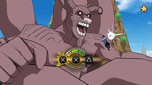Jede Mission findet auf einer Karte statt, auf der es verschiedene Aufgaben zu erfüllen gibt. In den meisten Fällen lautet diese alle Gegner zu vernichten und zum nächsten Punkt vor rücken, hier kommt das Schlagwort 1 VS 100 ins Spiel. Wie bei der bekannten Dynasty Warriors Reihe kämpft man sich durch eine nie enden wollende Arme von einfachen Gegner. Einzeln sind diese nicht besonders gefährlich aber durch ihre Anzahl können sie zu einem lästigen und hartnäckigen Problem werden. Zwar kämpft man nie gegen die besagten 100 Mann auf einmal, aber eine Gruppe von rund vierzig Gegnern gehört hier schon zum Standard. Glücklicherweise kann man sich hier auf ein bekanntes und erprobtes Gameplay verlassen, denn die Entwickler haben sich reichlich bei dem Kampfsystem der Ultimate Ninja Storm Reihe bedient. Jeder Charakter verfügt über eine stolze Anzahl von Combos, Ausweichmöglichkeiten, Blocken und einer Ninjawaffe. Die Combos werden durch Drücken der Kreis und Dreieck ausgelöst und sind leicht und schnell umzusetzen, zudem besitzt jeder Charakter über eine spezielle Attacke und Erwachenmodus. Dieser Erwachenmodus ist von Charakter zu Charakter unterschiedlich. Im Falle von Naruto verwandelt man sich so in den vierschwänzigen Fuchs, während Kakashi sein Sharingan benutzt um Gegner zu betäuben. Hat man alle Gegner auf der Karte ausgeschaltet, erwartet einem in den meisten Fällen ein Bosskampft. Dieser unterscheidet sich nicht stark von den bisherigen Kämpfer, nur das er über mehr Gesundheit verfügt. Für spezielle Bosskämpfe gibt es Quick Time Events (QTE), welche imposant anzuschauen sind. Am Ende einer Mission wird abgerechnet und man wird mit einem Rang belohnt, ebenfalls erhält man Ninjakarten für die Charakterentwicklung. Durch diese Karten kann man die Fähigkeiten des Kämpfers erhöhen oder ihn mit neuen Attacken ausstatten. Insgesamt kann man vier dieser Karten einem Charakter zuordnen. Einige dieser Karten sind mit einander kombinierbar um weitere Bonis freizuschalten. Man sollte die Serie oder den Manga kennen, da ansonsten die Möglichkeiten der Kombinationen unendlich scheinen. Im Laufe der Geschichte schaltet man 26 Kämpfer frei. Angefangen von Gaara bis hin zu Danzou sind alle bekannten Charaktere der Serie vertreten und verfügen über ihre eigenen Combos und Erwachenmodies. Einmal freigeschaltet kann man diese Ninjas Frei in jeden Modus nutzen und mit ihnen bewältigte Storymission erneut versuchen, um eine bessere Wertung zu verdienen, oder auf Kopfgeld Ninja Jagd zu gehen.