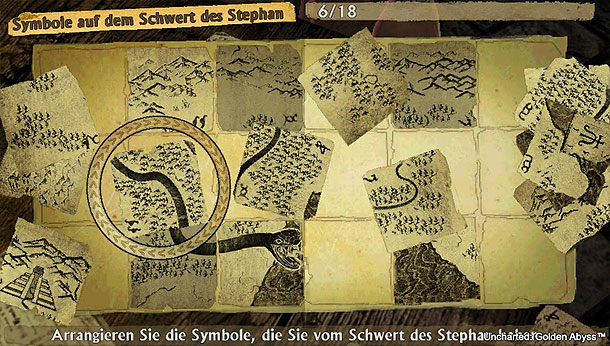 Gegenüber der Uncharted PS3 Spielen zeigt die Vita Version keine Schwächen. Alle bekannten Tricks wurden übernommen und durch viele Kleinigkeiten erweitert. Als Vorzeigetitel der Vita setzt man zudem stark auf den Einsatz des Touchscreen. Will man eine Wand erklimmen, reicht es wenn man auf dem Bildschirm den Weg vorzeichnet. Das funktioniert erstaunlich gut und nimmt leider den Reiz am Klettern. Zum Granaten werfen und für den Nahkampf kommt ebenfalls der Bildschirm zum Einsatz, aber im Gegensatz zum Krackseln hat man hier mit einigen Problemen zu kämpfen. Auch der Tilt Sensor kommt zum Einsatz. Wenn man auf einen Gegner zielt kann man durch Bewegen der Vita nochmal fein nach justieren. Anfangs ist es ungewohnt, aber nach kurzer Zeit geht es in Fleisch und Blut über und man landet einen Kopftreffer nach dem anderen. Aber genug von dem Gemeinsamkeiten, denn in einem Punkt ist die Vita Version den PS3 Brüden überlegen, die Rätsel. Mit Hilfe des neuen Touchscreen sind viel mehr Dinge möglich als auf der PS3. Überall findet man Symbole die es mit Hilfe von Kohlepapier abzupausen gilt, Kartenstücke richtig sortieren oder das Verschieben von Statuen. Aber auch die bekannten Schätze aus der PS3 Version sind vorhanden. Alle Rätsel und Sammlerstücke findet man im Journal. Zu jedem dieser Stücke gibt es eine kurze Info und wer ein Journal vollendet hat, bekommt dann eine zusammenhängende Geschichte präsentiert. Daneben gibt es Fotos von markanten Punkten zu knipsen und Prämien zu sammeln. Immer wieder bekommt man von Gegner Spielkarten oder Kristalle. Diese kann man über Near tauschen um seine Sammlung zu vervollständigen. Abgesehen vom Gameplay teilt sich Golden Abyss noch eine Gemeinsamkeit mit den PS3 Brüdern - den Mangel an Gegnervielfalt. Man kämpft sich durch die ewig gleichen Soldaten und Söldner. Viel Abwechslung gibt es da nicht, nur ab und zu wird man mehr gefordert, wenn man einen Soldaten mit einer Mini-Gun sieht oder sich ein Duell mit Snipern liefert. Auch die Bosskämpfe sind etwas langweilig, aber das war noch nie die Stärke der Uncharted Reihe.