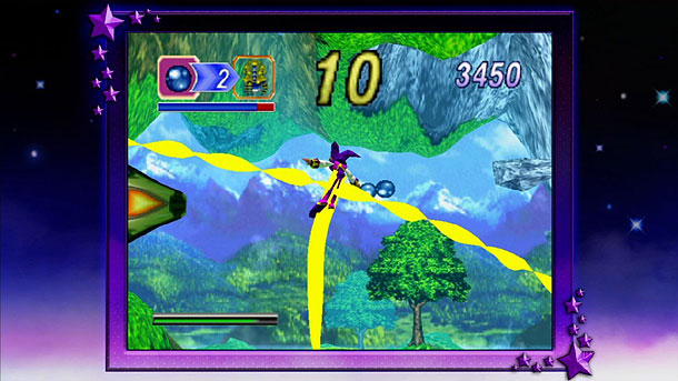 Damals ebenfalls als Super Mario 64 Killer angekündigt, ging das Spiel aber in eine völlig andere Richtung. Zwar konnte man mit Claire und Elliot auch durch Levels laufen und erkunden, doch um das Spiel zu meistern muss man schon mit NiGHTS los ziehen. So war NiGHTS into Dreams... schließlich kein Jump and Run, sondern eher ein Geschicklichkeitsrennspiel. Die sieben Level waren in jeweils vier Runden unterteilt, erkundete man fliegend und endeten mit einem Bosskampf. In jeder Runde muss man dabei mindestens 20 blaue Kugel finden und zum Zielpunkt bringen. Um so schneller und eleganter man dies schafft, um so höher wird das Ranking (für das 7. Level benötigt man in den vorhergehenden mindestens ein C) am Ende. Dabei sammelt man aber nicht nur die Kugeln, sondern versucht mittels durchfliegen von Ringen und ausüben von akrobatischen Moves den Score mit diversen Kombos in die Höhe zu treiben. Bis auf ein paar wenige Abschnitte innerhalb der Level, bewegt man sich dabei ausschließlich auf 2D Bahnen. Ebenfalls in den Level befinden sich noch einige kleinere Gegner, welche einen 5 Sekunden der eigenen wertvollen Zeit abknöpfen können. Jedoch sind diese recht harmlos.