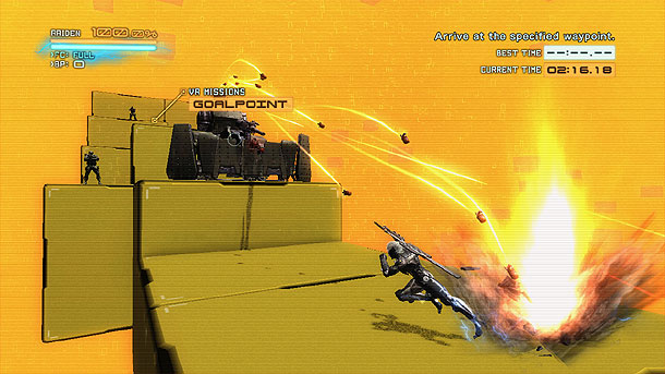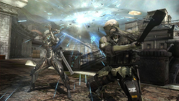 Der Fokus des Spiels liegt Platinum Games üblich auf dem Gameplay und das ist, um es kurz zu machen, einfach unglaublich gut. Manche erinnern sich möglicherweise noch an eine Szene aus Metal Gear Solid 4, in der Raiden das erste mal auftaucht und gleich ein paar Gekkos im Handumdrehen ausschaltet. Bereits diese Szene war ein starker Gegensatz zum eher behäbigen und langsamen Gameplay der Metal Gear Solid Serie und Platinum Games hat es geschafft dieses Gefühl aus der Szene in ein funktionierendes Spiel umzuwandeln. So hat man die Angriffe Raidens in starke und schwache unterteilt und ihm mit dem Ninjalauf die Fähigkeit verpasst, Gegner im Vorbeilaufen zu besiegen und einem Kugelhagel geschickt auszuweichen. Jedoch ist letzteres eher bei einzelnen Gegnern empfehlenswert. Sobald eine Gruppe von Gegnern auftaucht und sich darunter einige stärkere Soldaten befinden, wird das eigene Können abgefragt. Besonders das Blocken benötigt etwas Eingewöhnung, da anders als in den meisten Spielen keine eigene Taste dafür verwendet wird, sondern eine Tastenkombination. Man muss den Stick nach vorne bzw. in die Richtung des angreifenden Gegners bewegen und gleichzeitig die Quadrat-Taste drücken. Besonders in größeren Kämpfen kann dies schon mal nicht klappen, da der Stick dafür vorher in der Ausgangsposition sein muss. Jedoch bieten die wenigsten Gegner einem die nötige Zeit dafür. Immerhin wird ein Angriff des Gegners durch kurzzeitiges Aufleuchten signalisiert und man weiß was zu tun ist. Wer jedoch in den Kämpfen die besten Bewertungen erhalten möchte, muss die gegnerischen Angriffe nicht nur abwehren, sondern kontern und hier muss das Timing stimmen. Ist dies jedoch der Fall wird der Gegner kurzzeitig paralisiert und man kann ihm ordentlich zusetzen. Um den Gegner aber letztlich ins Datennirvana zu befördern, braucht man das sogenannte Zandatsu. Wer nämlich mit Kombos eine Leiste füllt, kann mit der L1-Taste eine Zeitlupe aktivieren in der man den Gegner im wahrsten Sinne des Wortes in seine Einzelteile zerlegen kann. Durchschneidet man gewisse Teile wird als Dank auch noch die eigene Lebensleiste wieder aufgefüllt und so verkommen manche Gegner im späteren Spielverlauf zu laufenden Medipack. Diese braucht man aber auch, da die Gegner nicht gerade zimperlich mit einem umgehen. Glücklicherweise gibt es eine Vielzahl an Schwierigkeitsgraden für jeden Spielertyp, sodass jeder das Ende erblicken sollte. Das sollte man auch, da vor allem die Endgegner der einzelnen Missionen puren Spaß versprechen.