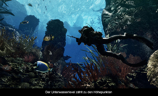 Was jedoch auffällig ist, ist die Länge eurer Reise. In mehr als ein Dutzend Missionen treibt es den Spieler über den kompletten amerikanischen Kontinent. Areale, wie zum Beispiel ein komplett zerstörtes Hollywood, ein Aufenthalt im All oder eine gigantische Ölplattform sorgen für jede Menge Abwechslung im Soldaten-Alltag. Und während man in den meisten Missionen vornehmlich gegen menschliche Gegner antritt, gibt es sogar Szenarien, wo selbst hungrige Haie oder Wölfe eurem Ziel im Wege stehen. Außerdem verdient Infinity Ward ein großes Lob für die Variation im Gameplay. Statt stundenlanger Ballerei (die sich jedoch immer noch sehr gut anfühlt) gibt es immer wieder neue Aufgaben, die ein wenig Abwechslung in den steifen Shooter Alltag bringen. Die größte Neuerung ist dabei sicherlich euer getreuer Hund. Ausgestattet mit einer Videokamera hat der Spieler die Möglichkeit den Zweibeiner quasi fernzusteuern und auf feindliche Soldaten zu hetzen. Überraschenderweise musste ich jedoch feststellen, dass die Abschnitte mit dem Hund relativ überschaubar sind. Man darf gespannt sein, ob Infinity Ward auch in Zukunft weiterhin auf den angriffslustigen Vierbeiner setzen wird.