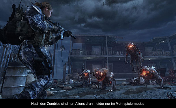 Und wer nach der Kampagne immer noch nicht genug vom Ballern hat, wird wieder Mal mit einem umfangreichen Multiplayer-Modus beglückt, der es wahrlich in sich hat. Zu den interessantesten Additionen zählt unter anderem der neue Extinction Modus, der in seiner Grundstruktur sehr stark an das Spiel Left for Dead erinnert. Der Modus führt euch durch eine kleine Stadt, wo man zusammen mit seinen Online-Kollegen gegen unzählige flinke Aliens kämpft. Zur Auswahl im Kampf gegen die Bugs stehen dem Spieler verschiedene Klassen zur Verfügung, die im Laufe des Spiels aufgewertet werden können. Darüber hinaus geht es nicht nur ums bloße Ballern, sondern auch um das Verlegen eines Bohrers, um die extraterrestrischen Brutstellen zu zerstören. Hat man sich seinen Weg durch die Stadt gebahnt, wartet am Ende ein Helikopter zur Rettung. Der Extinction Modus ist zwar keine Revolution, aber dennoch eine gelungene Alternative zum inzwischen leicht angestaubten Zombie Modus. Vorausgesetzt natürlich die eigene Gruppe besteht nicht aus nervigen Egomanen, die sich nur um sich selber kümmern.