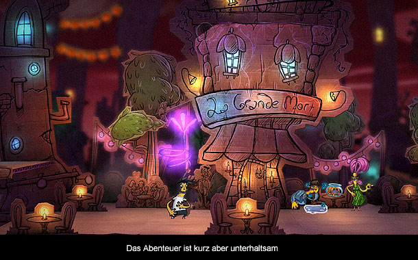 Die Handlung wird in verschiedenen Episoden erzählt und findet immer in einer eigenen Szenerie statt. In diesen Levels wird Ray vor diversen Aufgaben gestellt und trifft immer wieder auf neue Figuren. Hier kommt das Geschickt von „Adventure Time“ Autor Ryan North ins Spiel. North verleiht jedem Charakter seine eigene Persönlichkeit und gab ihnen die passenden Dialoge mit auf den Weg. Diese Gespräche sind übrigens nicht gerade kurz und erzählen oft die Schicksale der Menschen, wie sie in ihre Situation gekommen sind. So trifft man im Lauf seiner Reise auf einen verliebter Selbstmörder, der sich über seine schlechten Szene beklagt, eine Möwe die ihren Job als Plagegeist liebt und eine Krankenschwester, die eine heimliche Liebe zu einen Zombie hat (ihre Eltern sind natürlich nicht damit einverstanden). Die Dialoge sprühen nur so vor Charme und Witz und nehmen die Spielwelt wie auch die reale Welt herrlich aufs Korn. Dadurch wird dieser surreale Trip zu einem unterhaltsamen Erlebnis.