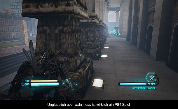 Unter der Haube des Spiels tuckert die Unreal Engine 3. An sich eine verlässliche Basis, aber manchmal traut man seinen Augen nicht. Vor allem die „Bayformers“ Abschnitte sehen richtig hässlich und karg aus. Die Texturqualität ist von Gestern, es gibt kurze Ruckler beim Nachladen der Abschnitte und die Framerate knickt auch noch ein, wenn in einem offenen Gebiet mal ein wenig mehr los ist. Dazu kommt leichtes Kantenflimmern und eine höllische Videokompression bei den Zwischensequenzen. Lediglich die englische Sprachausgabe ist gut besetzt und passend. Die Musik bleibt unauffällig und dass aus den Boxen DTS Sound kommt, merkt man nur selten. Insgesamt ist das auch technisch kein Titel, für den man eine neue Konsole braucht.