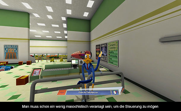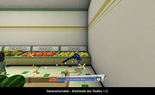 Gameplay technisch ist das Spiel sehr minimalistisch. Es gibt nur das Joypad und die unkontrollierbaren Körperteile des Oktopus. Langsam fühlt man sich in die Bewegungen ein und versucht mit Hilfe der Schultertasten und den Analosticks einen Schritt nach dem anderen zu machen. Der Clou dabei ist, dass eine Schultertaste nur ein Bein steuert. Will man nach vorne, muss man abwechselnd die Tasten bedienen. Hört sich relativ einfach an, sofern man etwas Gefühl und Geschick beweist. Knifflig wird es dann, wenn überall Gegenstände herumliegen, die Octodad anscheinend magisch anziehen und die einfachsten Bewegungen erschweren. Schafft man es die Beine zu beherrschen, steht die nächste Übung an: mit den Händen greifen und festhalten. Wie bei den Beinen gilt hier selbiges, egal was man auf dem Pad eingibt, Octodad scheint das Gegenteil zu machen.