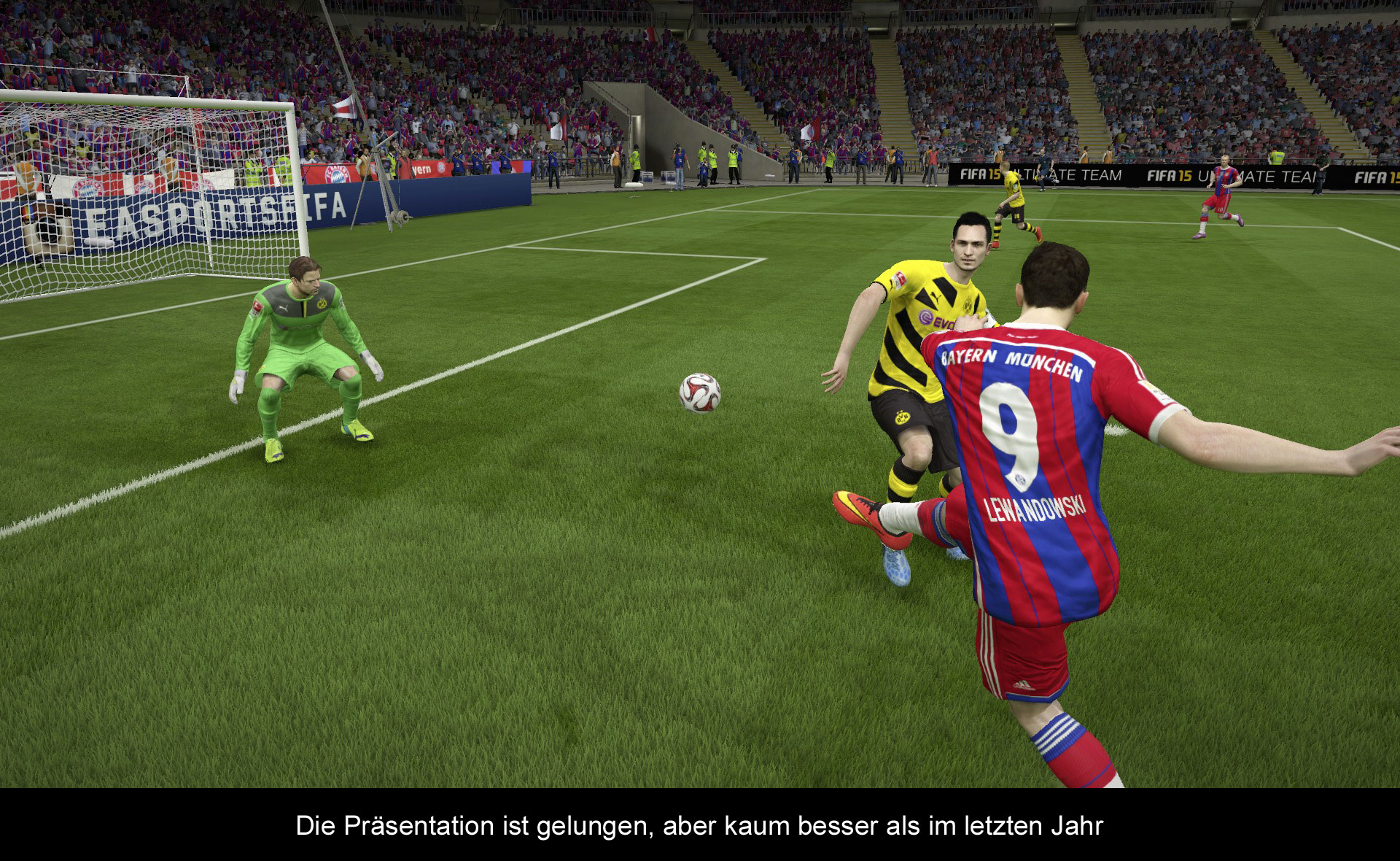 Während die Modi größtenteils unberührt blieben, lassen sich jedoch vor allem beim Gameplay einige Neuerungen wiederfinden. Zu den größten Veränderungen gehört sicherlich das neue Dribble-System, welches dafür sorgt, dass sich die Spieler nun etwas filigraner durch die gegnerischen Abwehrreihen bewegen können. Und obwohl dies vor allem dabei hilft das ewige Spammen der Lob-Funktion aus dem Spiel zu verbannen, sorgt das neue Dribble-System dafür, dass insbesondere Spieler mit Pace meist problemlos durch die gegnerischen Abwehrreihen laufen können. Ein Problem ist weg, ein neues ist da. Ähnlich sieht die Situation bei den Torhütern aus. So hat man dieses Jahr großen Fokus auf eine realitätsnahe Darstellung der Schlussmänner gelegt. Und während dies in manchen Situationen tatsächlich der Fall ist, kommt es leider noch viel zu oft vor, dass die Keeper mit merkwürdigen Aktionen auffallen. Ungewollte Abpraller, schlechtes Stellungspiel und ab und zu sogar gar keine Reaktion. Was auch immer EA mit den Schlussmännern gemacht hat, bedarf definitiv einer Generalüberholung. Eine Generalüberholung hat im Übrigen auch das Schusssystem bekommen. Während man in „FIFA 14“ meist die volle Kontrolle über seinen Abschluss hatte, ist dies inzwischen nicht mehr der Fall. Viel zu oft sorgt das Spiel mit seinen komischen Entscheidungen für Kopfzerbrechen beim Spieler. Und genau hier kommt es zur alles entscheidenden Preisfrage: Spielt man FIFA zum Spaß oder zur Herausforderungen? Gehört man zu den Personen, die ersteres bevorzugen, gibt es sicherlich kaum ein Spiel, welches einem schneller in die Welt des virtuellen Kickens hinein ziehen wird. Wer jedoch darauf ist das Spiel zu meistern, wird auch in „FIFA 15“ wieder mal mit merkwürdigen Situationen konfrontiert. Angefangen mit den miserablen Torhütern bis hin zum serientypischen Momentumwechsel. Letzteres sorgt dafür, dass man viel zu oft in Situationen gelangt, wo das Spiel plötzlich eine komplett andere Richtung einnimmt. In der Szene bezeichnet man dieses System auch als Scripting. Wenn man mit diesen Problemen der Ungerechtigkeit jedoch leben kann, wird man mit einem soliden Fußballspiel belohnt. Realismus sollte man jedoch nicht erwarten. Da schnelles Offensivspiel inzwischen so sehr im Vordergrund steht, wie noch nie zuvor, fällt klassisches Mittelfeldgeplänkel meist ins Wasser. Ab und zu erinnert das Geschehen mehr an ein Ping Pong Spiel. Während die Verkaufszahlen aber inzwischen eindeutig zeigen, dass das den meisten Spielern vollkommen egal ist, dürfen sich alteingesessene FIFA Zocker auf eine solide Version des klassischen Serien-Gameplays freuen. Freunde des realistischen Fußballspiels sollten sich jedoch der Tatsache bewusst sein, dass man eben diesen hier nicht findet.