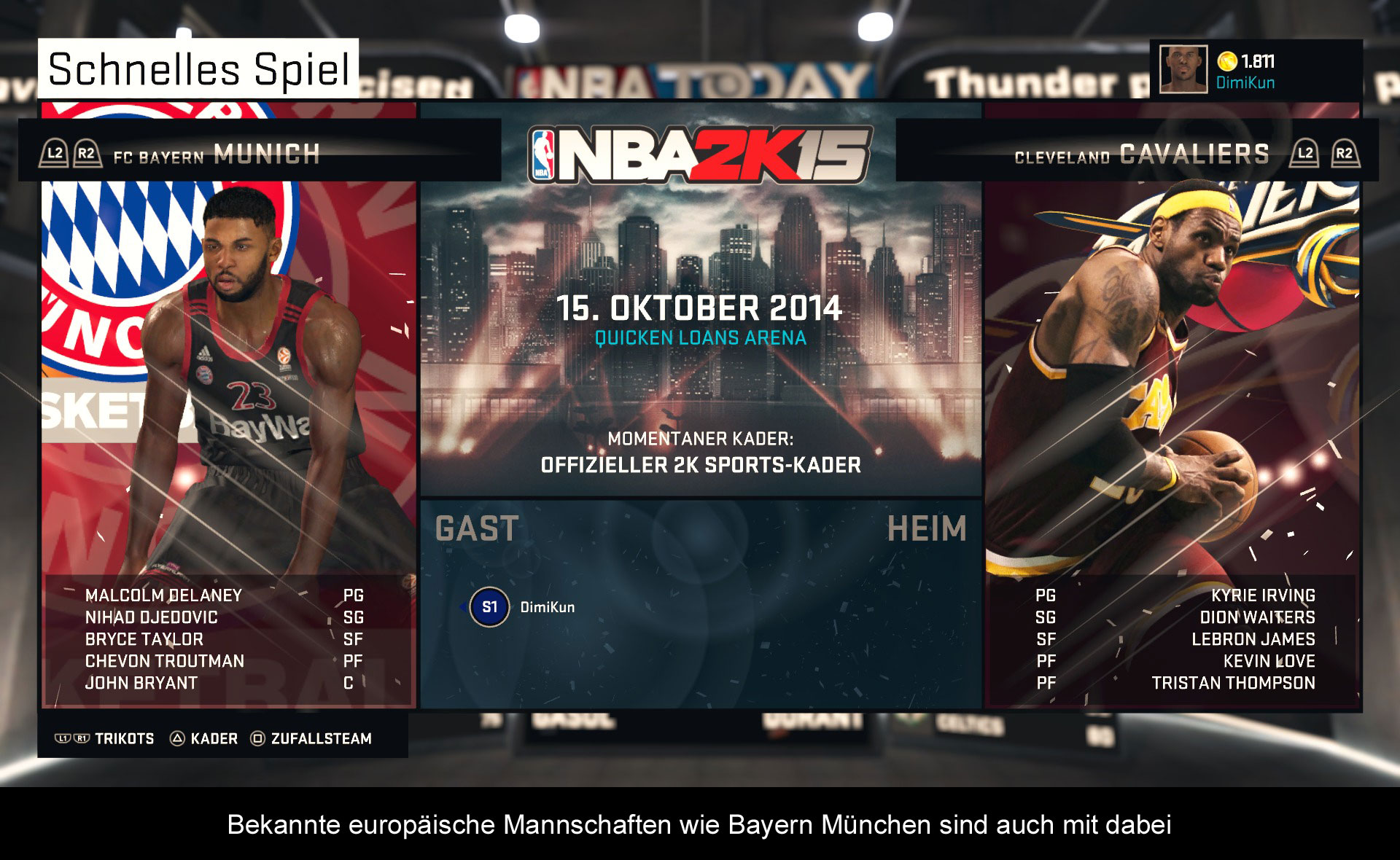 Dass sich in der Grundstruktur des Titels nur wenig verändert hat, sieht man bereits kurz nach Spielstart. Wie auch im Jahr zuvor wird man zunächst einmal dazu gezwungen ein Freundschaftsspiel zwischen den Teilnehmern der letzten Finals nachzuspielen, während sich das Game im Hintergrund um die Installation der einzelnen Daten kümmert. Da simples überspringen jedoch nicht möglich ist, bleibt einem nichts anderes übrig, als geduldig zu warten. Im Hauptmenü angekommen darf man jedoch feststellen, dass nicht alles gleichgeblieben ist. Während die Menüs in „NBA 2K14“ eher altbacken und langweilig daherkamen, hat man der neuen Version ein brandneues und farbenfrohes Design spendiert. Im Mittelpunkt der Neuerungen steht unter anderem die neue „2KTV“ Option, die jedoch zum Zeitpunkt der Review noch nicht verfügbar war. Laut 2K Sports wird es aber unter diesem Menüpunkt jede Woche eine neue Sendung über die Welt der NBA geben. Man kann davon ausgehen, dass diese Option wohl erst zum Saisonstart aktiviert wird.