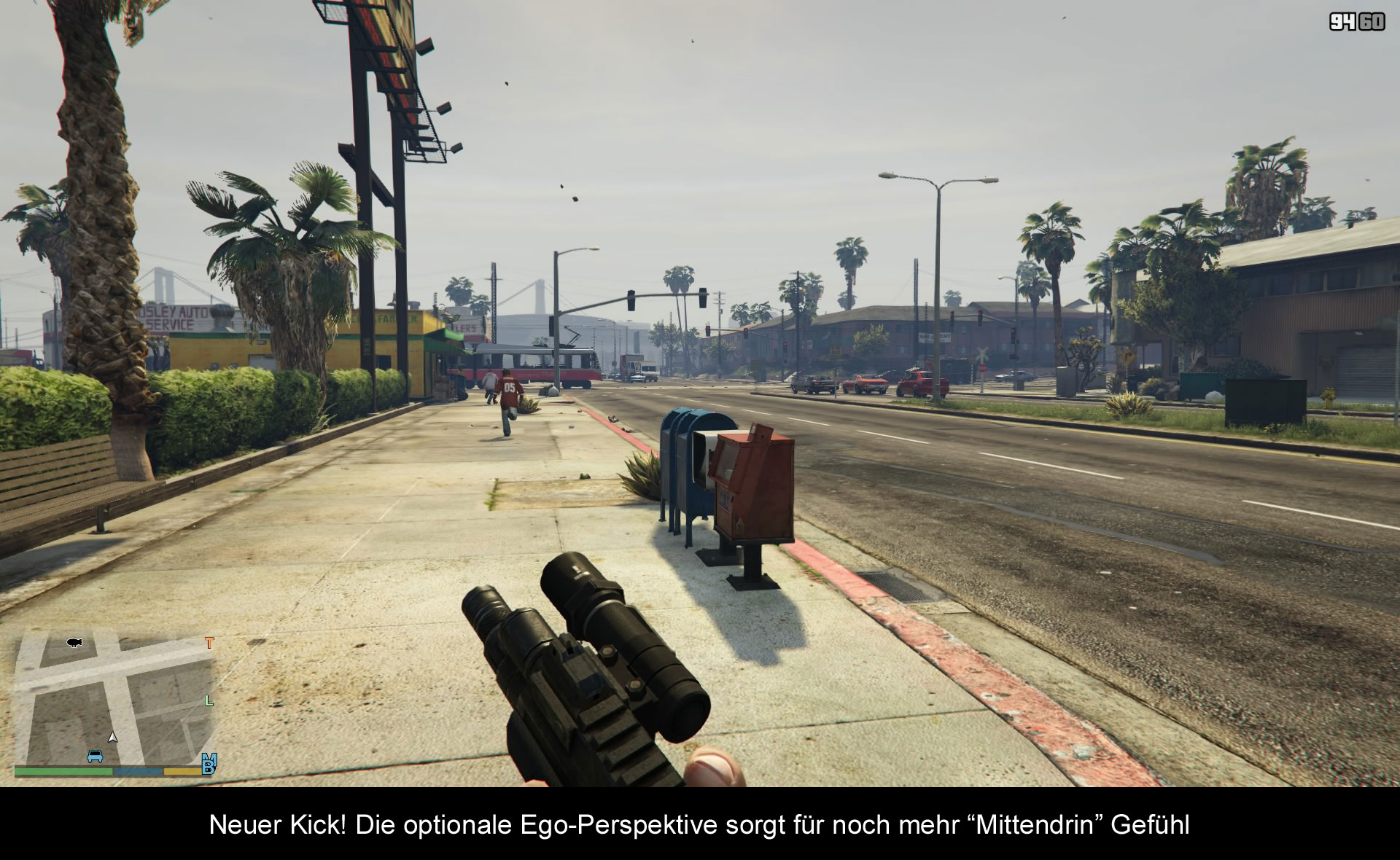 Ein weiteres Novum der PS4 Version ist die neue Ego-Perspektive, die mit einem simplen Betätigen des Touchpads aktiviert wird. Dank zahlreicher neuer Animationen lässt sich sogar das ganze Spiel in der neuen Ich-Ansicht spielen. Während das Ganze in kurzen Abschnitten durchaus sehr eindringend und beeindruckend ist, kann es in hektischen Situationen jedoch schon mal etwas unübersichtlich werden. Doch gerade beim Fahren macht die neue Ansicht am meisten Spaß. Vor allem, weil man jedes Auto mit einer neuen Innenansicht ausgestattet hat. Auch hier gilt: Fleißig, fleißig, Team Rockstar.