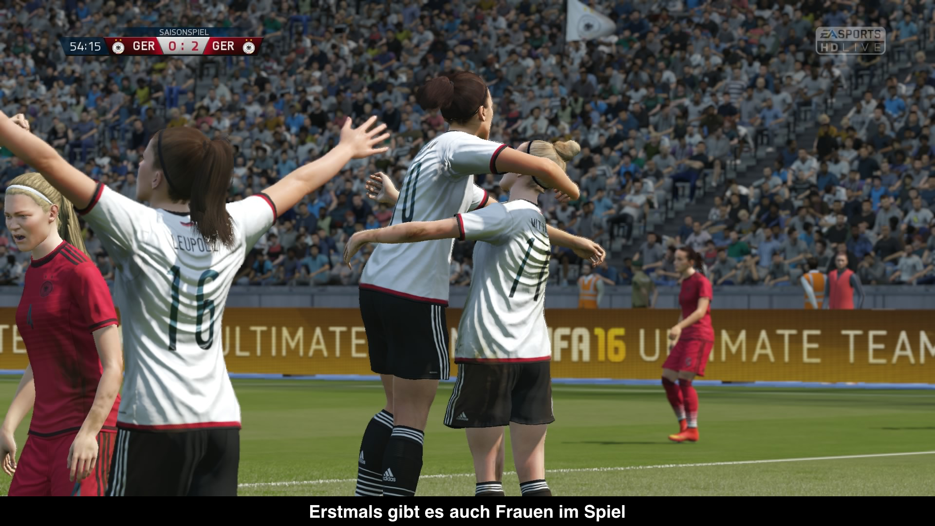 In der Realität gewinnt Frauenfußball an immer mehr Bedeutung, in den Spielen wurden die Frauen bislang aber nicht einmal erwähnt. Mit FIFA 16 ändert sich dies endlich und so gibt es erstmals auch Frauenmannschaften. Dabei stehen zwölf Frauen-Nationalmannschaften zur Verfügung, unter anderem Deutschland oder die USA, die man entweder im Freundschaftsspielen, Online-Saisons oder in einem Frauenturnier spielen darf. Männer gegen Frauen geht natürlich nicht und Vereinsmannschaften fehlen völlig. Gameplaytechnisch gibt es bei den Frauen eher weniger Änderungen zu den Herren. Insgesamt ist das Spielgeschehen noch einen Tick langsamer. Sonst profitieren auch die Frauen von den Änderungen im allgemeinen Gameplay.