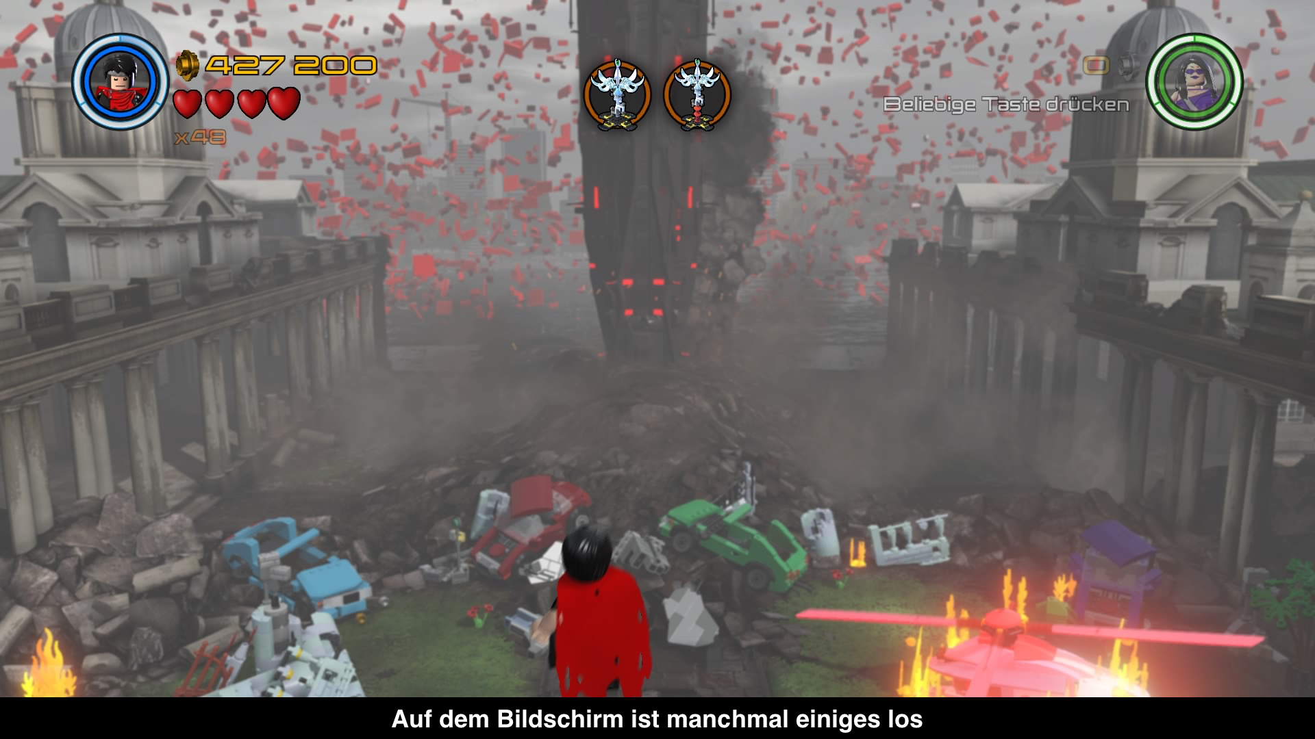 Die große Anzahl von übernommen Grafiken aus den Vorgängern hat auch was Gutes. Tony Stark und seine Iron Man Rüstung haben mehr Persönlichkeit denn je. Fast jeder Anzug hat seine eigene Animation spendiert bekommen. Bei MARK 1 kommt Stan Lee persönlich und zieht ihn an, während die Superior-Rüstung mit Hilfe der Nanobots geformt wird. Auch spezifische Komboangriffe sind eine Wucht und diversen Szenen aus den Filmen nachempfunden. Das Highlight werden aber Hulk und Iron Man bleiben. Hulk schnappt sich Tony und verwendet ihn wie eine Laser-Spraydose. Hier spürt man wieder den bekannten LEGO Geist, schade dass dies ein Einzelfall bleibt. Bei der Grafik hat sich nicht viel getan, nur das man es endlich schafft, Manhattan ruckelfrei darzustellen. Was man zudem aus dem Vorgänger übernommen hat, sind die zahlreichen Bugs. Figuren bleiben in der Geometrie stecken, fallen durch den Boden, verkeilen sich unlösbar ineinander oder das Spiel stürzt komplett ab. Alles ganz im Sinne von “It's not a bug, it's a feature"! Zumindest bleiben dieses Mal Fehler aus, die den Spielstand löschen.