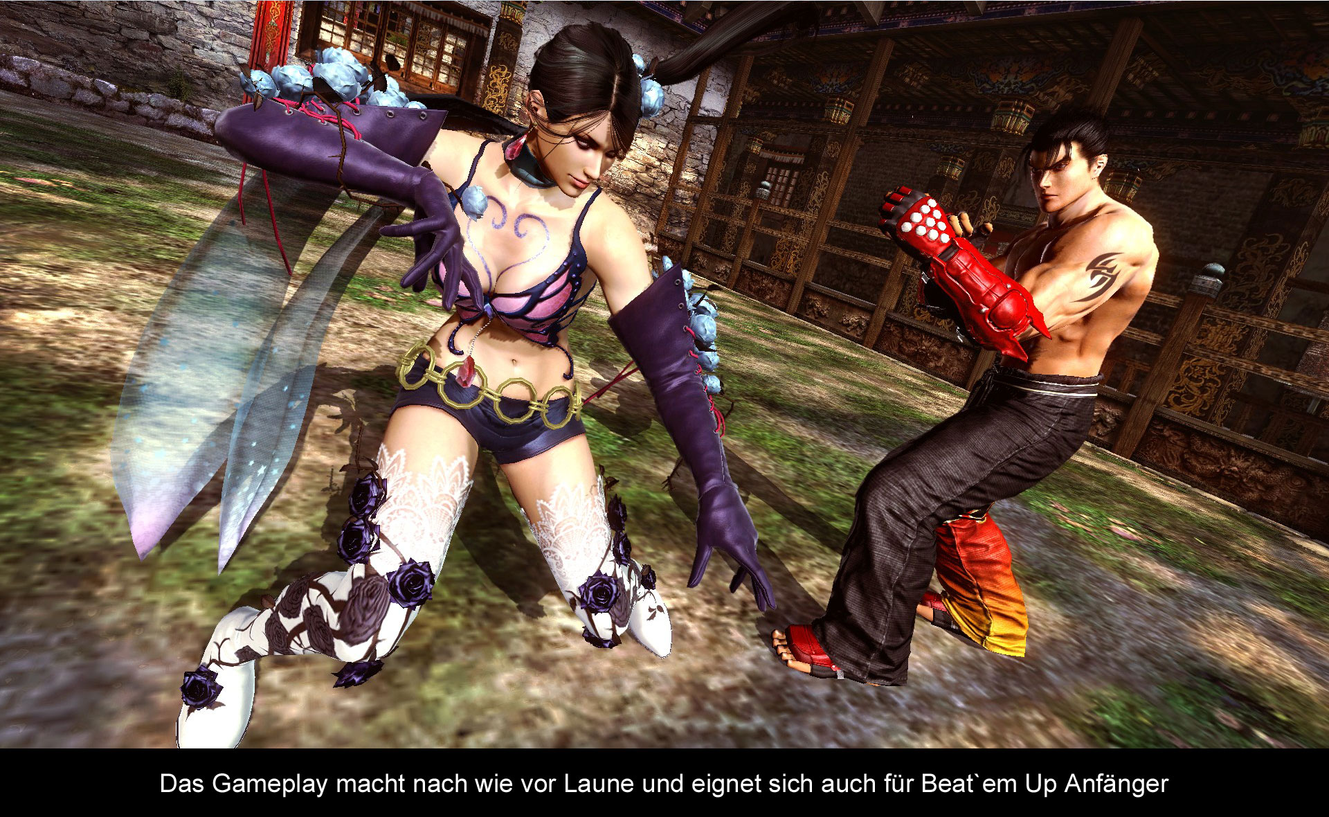 Bislang war die Tekken Serie immer ein Garant für hübsche Grafiken und zu ihrer Zeit sehr feine Animationen. Ganz bestätigen kann man diesen Eindruck aber nicht mehr. Zwar wirkt alles auf den ersten Blick wirklich hübsch und detailliert, doch das ist nur aus der Nähe der Fall und auch nur bei den Charakteren. Sobald man den Charakter nicht in einer Zwischensequenz sieht, sondern aus einem gewissen Abstand, macht sich das Aliasing bemerkbar, was den Gesamteindruck ein wenig stört. Zudem wirken vor allem im Kampagnenmodus die Level äußerst unkreativ und sind dann auch noch mit schwachen Texturen ausgestattet. Hier hätte man eigentlich mehr erwartet, vor allem nach dem Ankündigungsvideo, in dem man jede Pore von Jin sehen konnte. Das dies nicht möglich ist, war zwar klar, aber trotzdem ist der Gesamteindruck eher bescheiden ausgefallen, da Sachen wie das Aliasing oder Kantenflimmern in manchen Szenen äußerst stören. Dafür verdienen die Animationen aber ein großes Lob, da die Kämpfe so flüssig ablaufen, wie noch nie zuvor. Jeder Angriff geht in den anderen hinüber und es sieht einfach fantastisch aus. Da hat man sich wirklich Mühe gegeben. Zumindest mehr als bei der allgemeinen technischen Umsetzung, denn wenn man das Spiel nicht auf der Festplatte installiert, werden die Ladezeiten einen in den Wahnsinn treiben. Diese sind viel zu lang und kommen auch viel zu häufig vor. Ein Beispiel gefällig? Bitte: Man startet das Spiel, klickt das Intro weg und es wird erstmal etwa eine halbe Minute geladen. Dann sieht man endlich das Menü, aber das Logo verrät einem, dass im Hintergrund immer noch geladen wird. Aber wie man so ist, will man schnell weiter und klickt den Kampagnen-Modus an. Hier wird erstmal die Charakter-Auswahl geladen und wenn man dann einen Kämpfer ausgewählt hat, dauert es wieder etwas. Und wenn man dann sein Level ausgewählt hat, muss man wieder eine Ladezeit überwinden. Aber wehe dem, der im Level stirbt und es Neustarten oder seinen Charakter neu ausstatten möchte. Zudem wird es wohl ein Rätsel bleiben, warum bei Spielstart die Trophäen immer wieder neu installiert werden müssen. Hohe Programmierkunst sieht jedenfalls ganz anders aus!