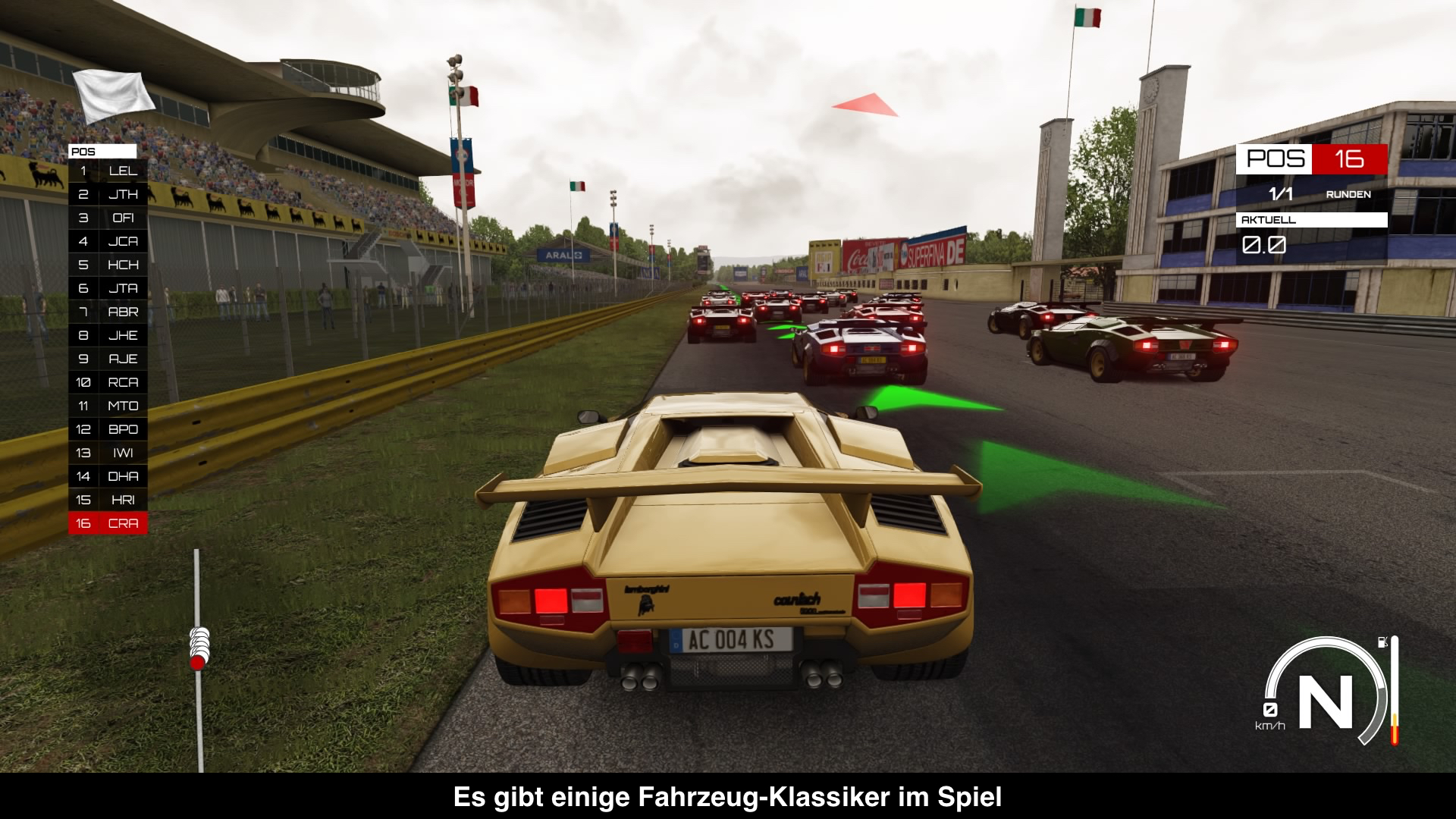 Assetto Corsa stammt ursprünglich vom PC und solche Simulationen sind dort gerne etwas anspruchsvoller was die Hardware angeht. Umso überraschender war dann die Ankündigung des Spiels für Konsolen und das Ziel von stabilen 60 Bildern pro Sekunde. So überraschend das Ganze dann war, so vorhersehbar war eigentlich das Ergebnis. Denn mit stabilen 60 Bildern pro Sekunde läuft Assetto Corsa nur in Zeitrennen. Sobald ein paar Fahrzeuge hinzukommen, sinkt die Bildrate und das offenbar mehr oder weniger proportional zur Anzahl der Fahrzeuge. Dann läuft das Spiel eher mit 45 Bildern pro Sekunde, was für ein ziemlich unrundes Spielgefühl sorgt. Zu allem übel gibt es in dem Spiel auch einiges an Tearing, was bei den tristlos wirkenden Umgebungen eine kleine Enttäuschung ist. Einzig die Fahrzeuge sind schön detailliert und es gibt sogar ein leichtes Schadensmodell. Soundtechnisch gibt es wenig auszusetzen. Motoren klingen satt und unterschiedlich und selbst Bremsgeräusche wirken durchaus authentisch. Die Menümusik verdient aber das Prädikat „zum Vergessen“. Hier gibt es nichts mit Ohrwurm-Potenzial.