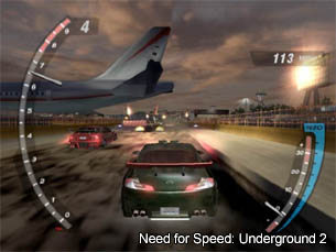 Gott sei dank hat man bei EA eingesehen, dass der Vorgänger nicht gerade toll auf der PlayStation 2 aussah. „Carbon“ macht nämlich seinen Job trotz gleicher Engine wesentlich besser. Das liegt vor allem an der passenderen Farbwahl (alles wirkt bläulich, nächtlich) und den minimal besseren Umgebungstexturen. Dadurch wird ein weitaus atmosphärischeres und stimmigeres Bild erzeugt. Trotzdem lässt sich nicht leugnen, dass sich bis auf die hübscheren Automodelle nicht viel seit Need for Speed: Underground 2 getan hat. Die frei befahrbare Stadt ist nach wie vor menschenleer (bis auf die wenigen anderen Fahrzeuge), kennt nur eine Tageszeit (Mitternacht) und hat mit vielen Framerate Problemen zu kämpfen. Gerade bei der Bildwiederholrate hatte ich mir ein wenig mehr Stabilität versprochen, aber selbst die knappen 25 Bilder pro Sekunde werden immer wieder durch heftige Ruckler (besonders gegen Ende des Spieles und bei den Drift Rennen) unterbrochen. Wenigstens hat man an den Ladezeiten und dem Speichervorgang gefeilt, denn beide Sachen gehen mittlerweile äußerst flott über die Bühne. Aber nicht nur die Grafik ist wieder etwas besser geworden, auch beim Soundtrack hat sich EA ein wenig mehr Mühe gegeben. Geboten wird eine ordentliche Mischung aus Rock, Elektro und Hip Hop, die zwar keinen Preis verdient, aber immerhin wieder deutlich hörbarer ausfällt, als noch in „Most Wanted“. Einzelne Titel lassen sich übrigens deaktivieren, so dass man nur noch zu den Songs fährt, die man auch hören möchte. Nichts zu bemängeln, gibt es dagegen an der professionellen deutschen Sprachausgabe, die dem englischen Original in nichts nachsteht. Besser ist zudem auch die Integration der interaktiven Musik gelungen, die bei bestimmten Events abgespielt wird. Besonders hervorzuheben sind dabei die Canyon Duelle, welche mit treibenden Trommelrythmen unterlegt wurden. Das sorgt für zusätzliche Adrenalinschübe.