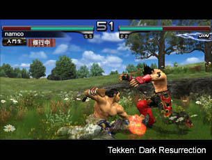 Erst einmal eine schlechte Nachricht vorweg: Tekken: Dark Resurrection verfügt wie die PS2 Version von Tekken 5 über keinen richtigen Onlinemodus. So wird euch lediglich die Möglichkeit angeboten, aus dem Internet stammende Ghostdaten herunter zuladen. Diese „Geister“ repräsentieren dann den Kampfstil desjenigen Spielers, der die Datei zur Verfügung gestellt hat. Das ist zwar ein netter Bonus, aber ein schaler Beigeschmack bleibt trotzdem, da diese Option eher an eine Alibilösung erinnert. Ansonsten steht euch noch das standardmäßige Ad-Hoc Feature zur Verfügung, womit ihr drahtlos gegen einen zweiten Spieler antreten könnt. Abgesehen davon, gehört Tekken: Dark Resurrection zu den wenigen Spielen, welche die Game Sharing Funktion sinnvoll unterstützen. Denn für ein schnelles Zweispielermatch reicht nämlich schon eine einzige UMD aus.